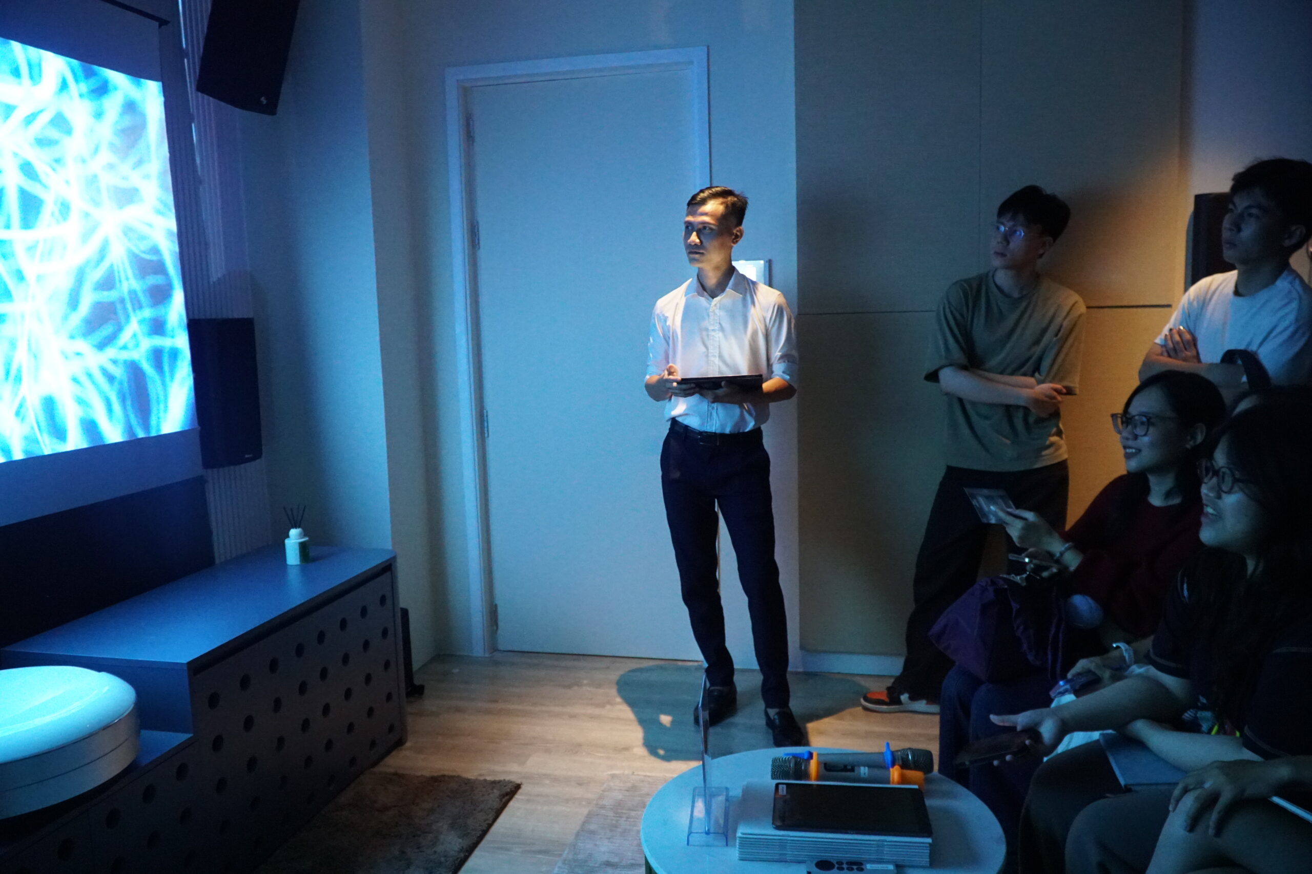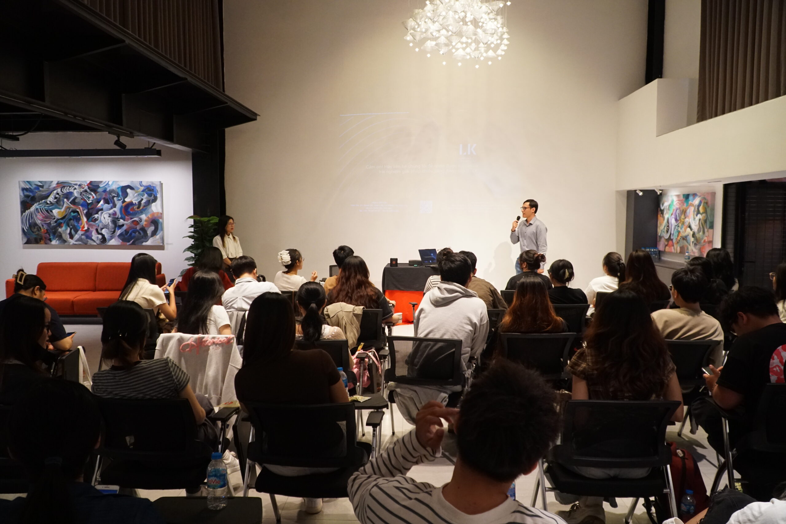 Following the tour, the students gathered in the LightHub Ballroom for a Presentation & Q&A Session hosted by LK Technology. Mr. Nguyen Manh Hoang, CEO of LK Technology, opened the session with insights on career orientation in lighting design, emphasizing that light is not merely a technical element but a language of spatial emotion. He shared that interior designers hold a unique advantage when approaching lighting design, as they inherently understand how materials, color, and form interact to create emotional resonance within a space.